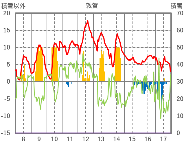 | 日 | 時 | 気温 | 降水 | 風向/風速 | 日照 | 積雪 | 降雪 |