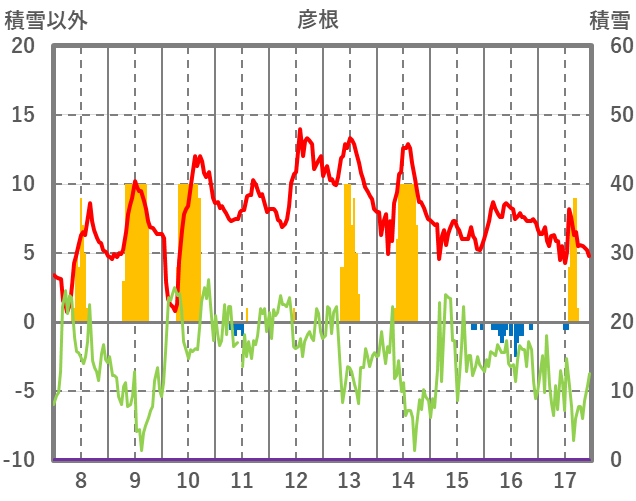 | 日 | 時 | 気温 | 降水 | 風向/風速 | 日照 | 積雪 | 降雪 |