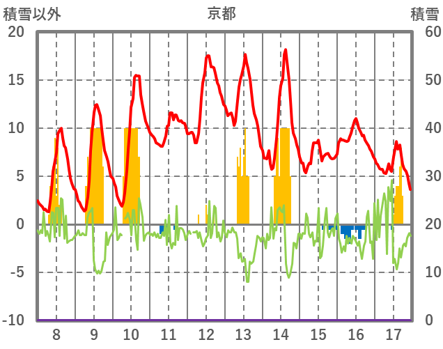 | 日 | 時 | 気温 | 降水 | 風向/風速 | 日照 | 積雪 | 降雪 |