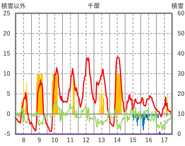 | 日 | 時 | 気温 | 降水 | 風向/風速 | 日照 | 積雪 | 降雪 |