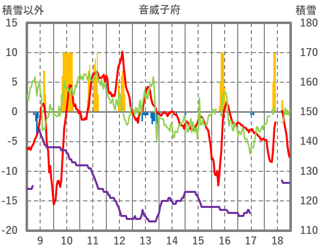 | 日 | 時 | 気温 | 降水 | 風向/風速 | 日照 | 積雪 | 降雪 |