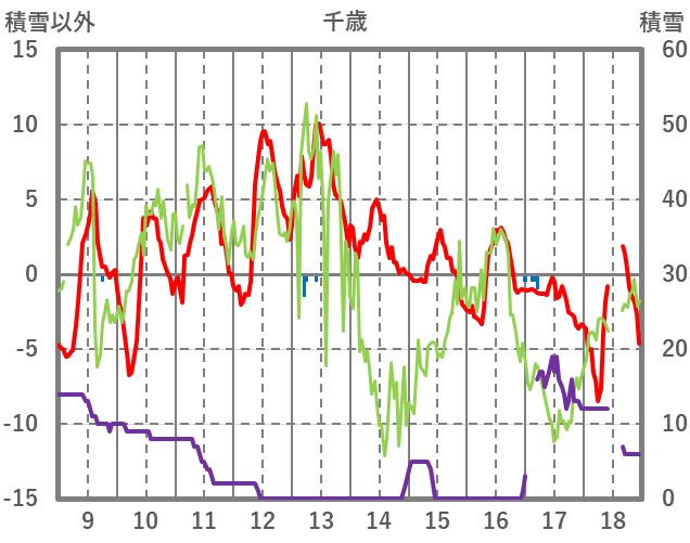 | 日 | 時 | 気温 | 降水 | 風向/風速 | 日照 | 積雪 | 降雪 |