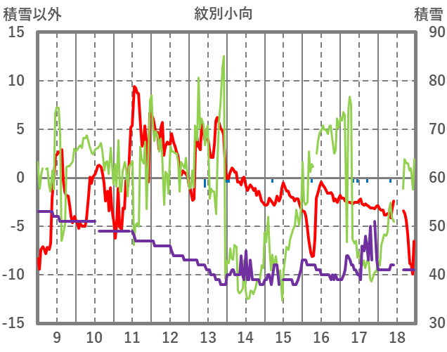 | 日 | 時 | 気温 | 降水 | 風向/風速 | 日照 | 積雪 | 降雪 |