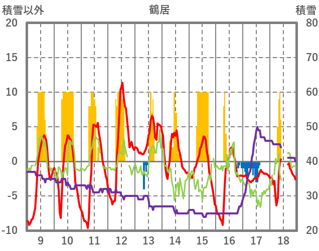 | 日 | 時 | 気温 | 降水 | 風向/風速 | 日照 | 積雪 | 降雪 |