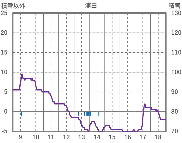 | 日 | 時 | 気温 | 降水 | 風向/風速 | 日照 | 積雪 | 降雪 |