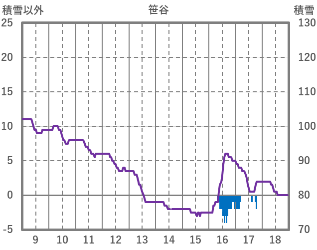 | 日 | 時 | 気温 | 降水 | 風向/風速 | 日照 | 積雪 | 降雪 |