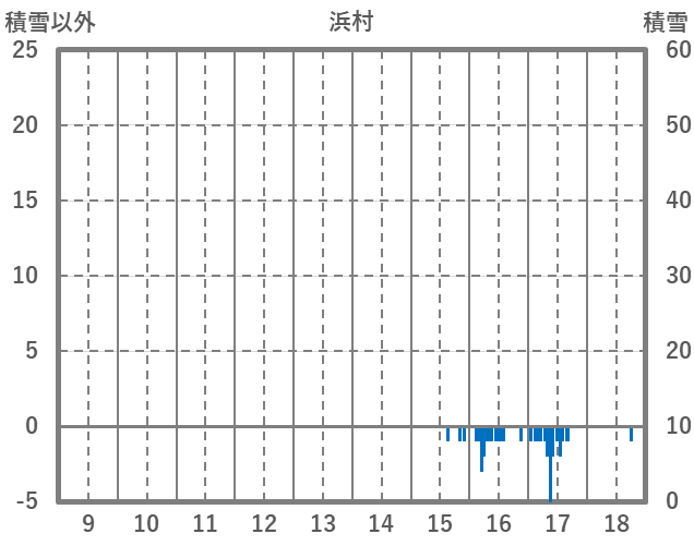 | 日 | 時 | 気温 | 降水 | 風向/風速 | 日照 | 積雪 | 降雪 |