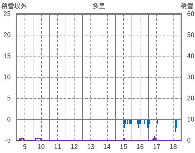 | 日 | 時 | 気温 | 降水 | 風向/風速 | 日照 | 積雪 | 降雪 |