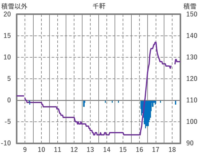 | 日 | 時 | 気温 | 降水 | 風向/風速 | 日照 | 積雪 | 降雪 |