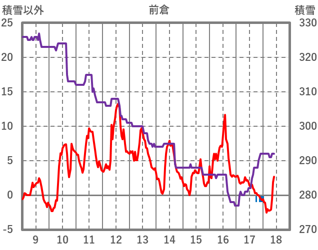 | 日 | 時 | 気温 | 降水 | 風向/風速 | 日照 | 積雪 | 降雪 |