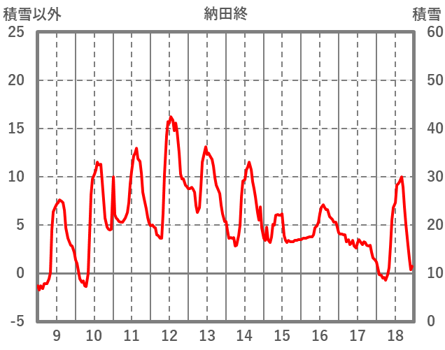 | 日 | 時 | 気温 | 降水 | 風向/風速 | 日照 | 積雪 | 降雪 |