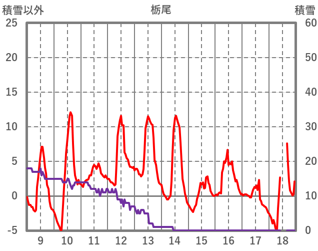| 日 | 時 | 気温 | 降水 | 風向/風速 | 日照 | 積雪 | 降雪 |