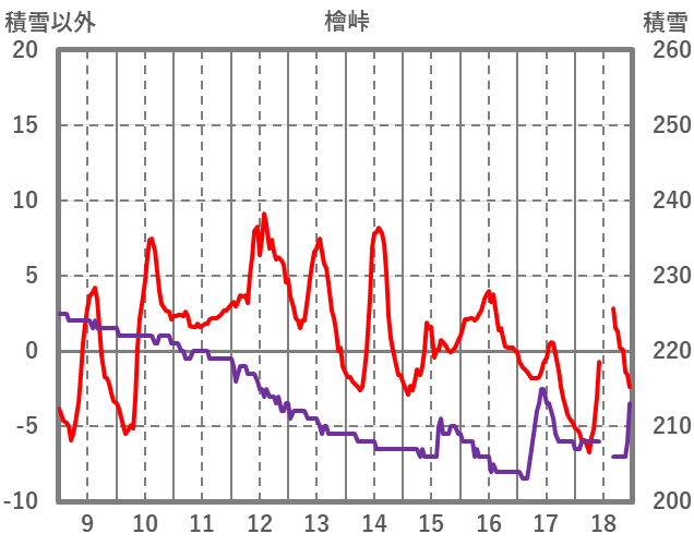 | 日 | 時 | 気温 | 降水 | 風向/風速 | 日照 | 積雪 | 降雪 |