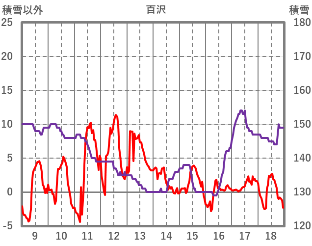 | 日 | 時 | 気温 | 降水 | 風向/風速 | 日照 | 積雪 | 降雪 |