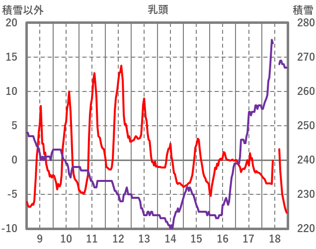 | 日 | 時 | 気温 | 降水 | 風向/風速 | 日照 | 積雪 | 降雪 |