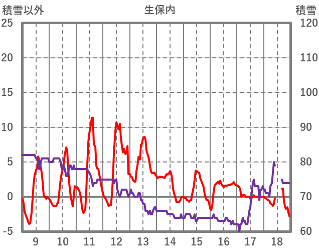 | 日 | 時 | 気温 | 降水 | 風向/風速 | 日照 | 積雪 | 降雪 |