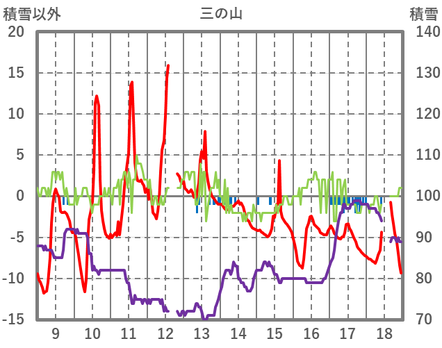 | 日 | 時 | 気温 | 降水 | 風向/風速 | 日照 | 積雪 | 降雪 |