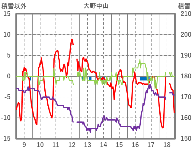 | 日 | 時 | 気温 | 降水 | 風向/風速 | 日照 | 積雪 | 降雪 |