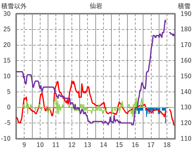 | 日 | 時 | 気温 | 降水 | 風向/風速 | 日照 | 積雪 | 降雪 |