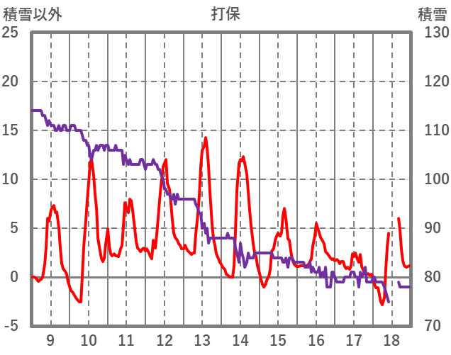 | 日 | 時 | 気温 | 降水 | 風向/風速 | 日照 | 積雪 | 降雪 |