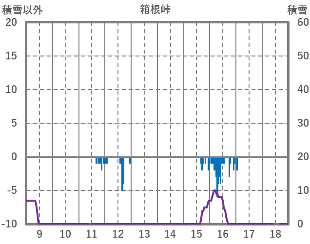 | 日 | 時 | 気温 | 降水 | 風向/風速 | 日照 | 積雪 | 降雪 |