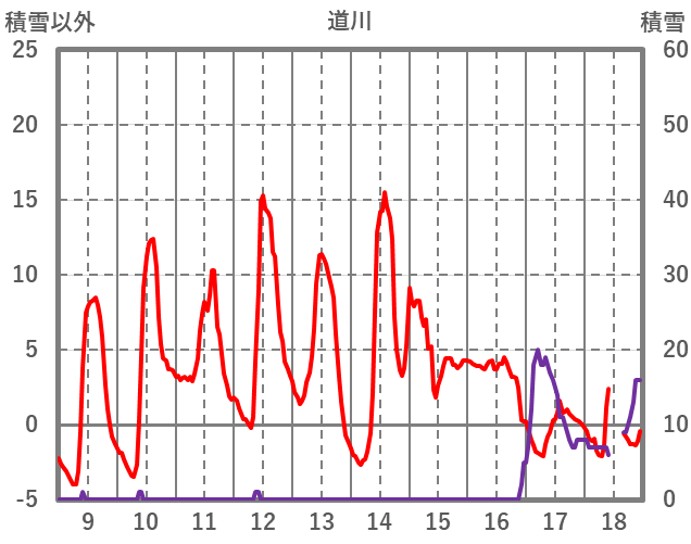 | 日 | 時 | 気温 | 降水 | 風向/風速 | 日照 | 積雪 | 降雪 |