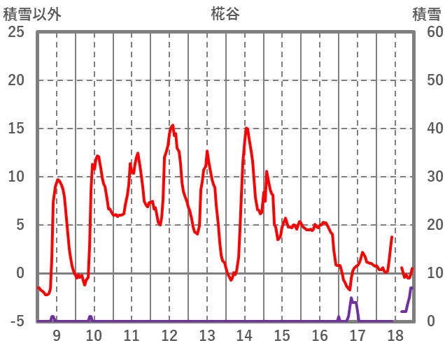 | 日 | 時 | 気温 | 降水 | 風向/風速 | 日照 | 積雪 | 降雪 |