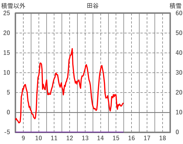 | 日 | 時 | 気温 | 降水 | 風向/風速 | 日照 | 積雪 | 降雪 |