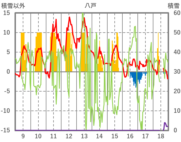 | 日 | 時 | 気温 | 降水 | 風向/風速 | 日照 | 積雪 | 降雪 |