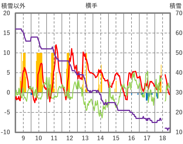 | 日 | 時 | 気温 | 降水 | 風向/風速 | 日照 | 積雪 | 降雪 |