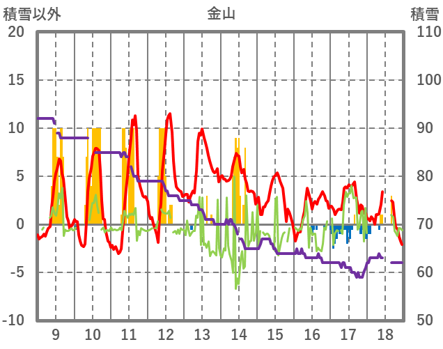 | 日 | 時 | 気温 | 降水 | 風向/風速 | 日照 | 積雪 | 降雪 |
