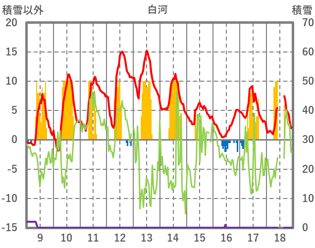 | 日 | 時 | 気温 | 降水 | 風向/風速 | 日照 | 積雪 | 降雪 |