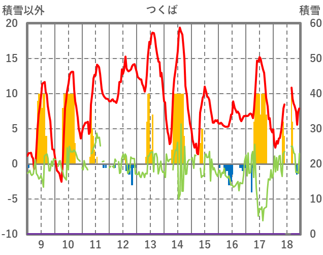 | 日 | 時 | 気温 | 降水 | 風向/風速 | 日照 | 積雪 | 降雪 |