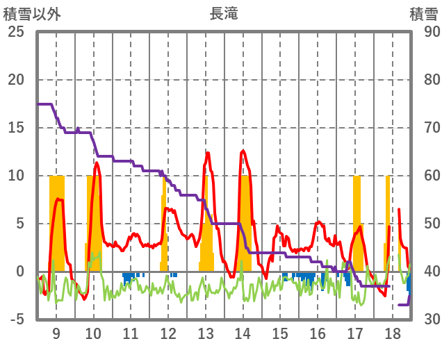 | 日 | 時 | 気温 | 降水 | 風向/風速 | 日照 | 積雪 | 降雪 |