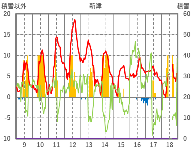 | 日 | 時 | 気温 | 降水 | 風向/風速 | 日照 | 積雪 | 降雪 |