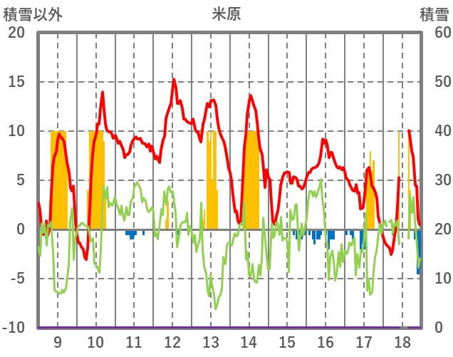 | 日 | 時 | 気温 | 降水 | 風向/風速 | 日照 | 積雪 | 降雪 |