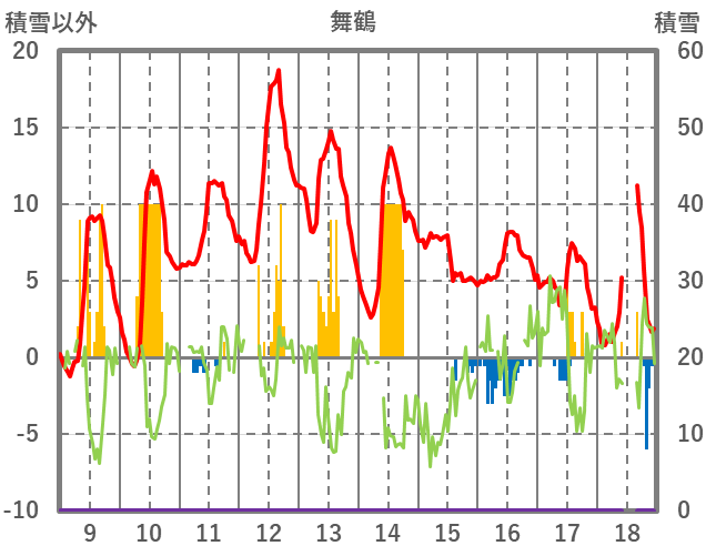 | 日 | 時 | 気温 | 降水 | 風向/風速 | 日照 | 積雪 | 降雪 |