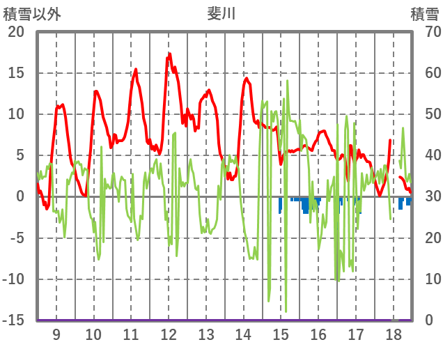 | 日 | 時 | 気温 | 降水 | 風向/風速 | 日照 | 積雪 | 降雪 |