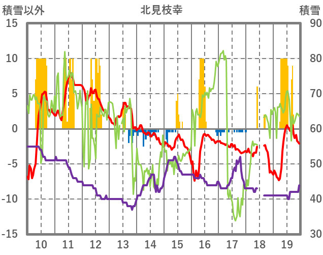 | 日 | 時 | 気温 | 降水 | 風向/風速 | 日照 | 積雪 | 降雪 |