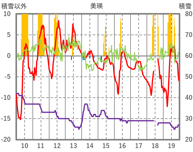 | 日 | 時 | 気温 | 降水 | 風向/風速 | 日照 | 積雪 | 降雪 |