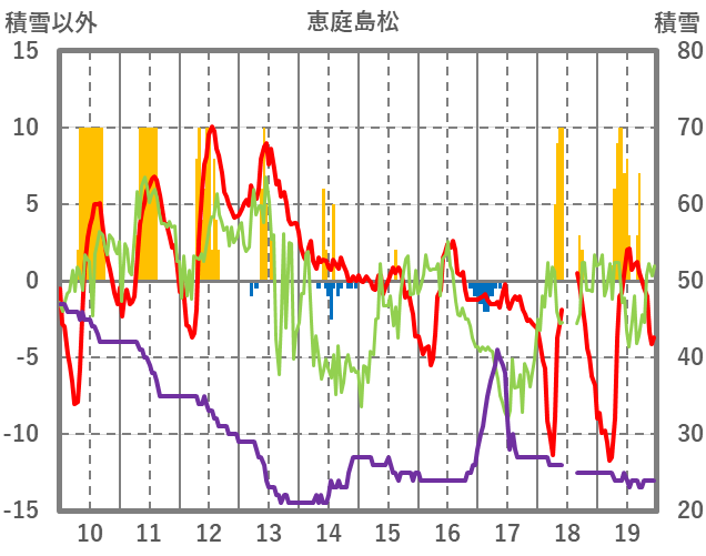 | 日 | 時 | 気温 | 降水 | 風向/風速 | 日照 | 積雪 | 降雪 |