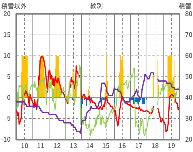 | 日 | 時 | 気温 | 降水 | 風向/風速 | 日照 | 積雪 | 降雪 |