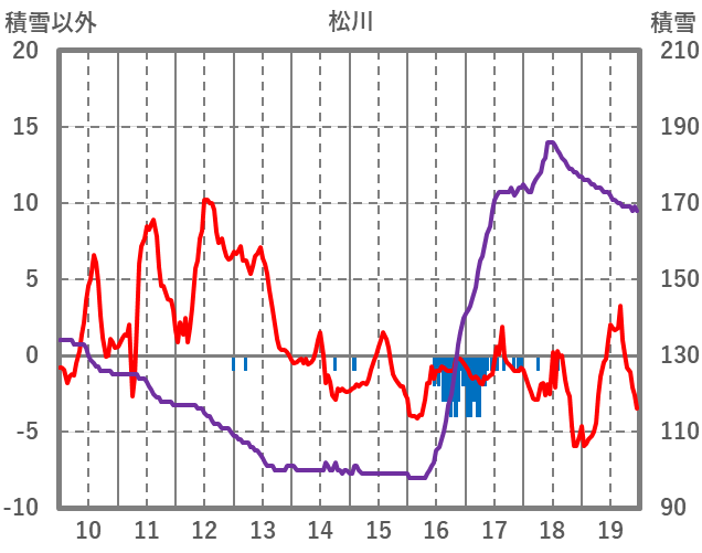 | 日 | 時 | 気温 | 降水 | 風向/風速 | 日照 | 積雪 | 降雪 |