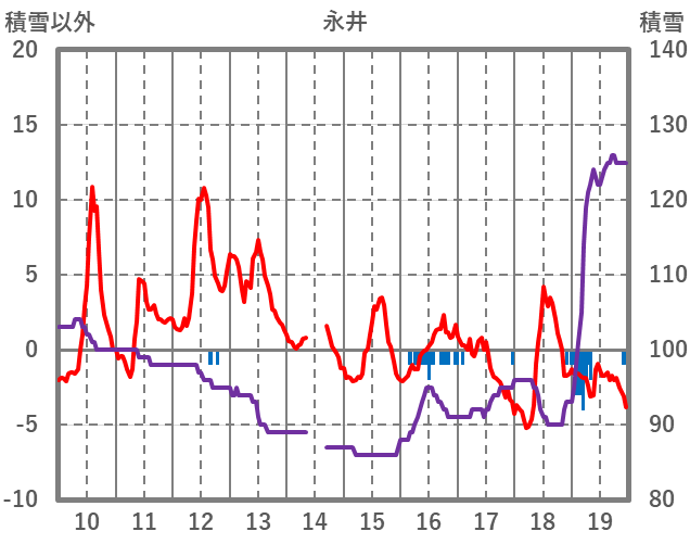| 日 | 時 | 気温 | 降水 | 風向/風速 | 日照 | 積雪 | 降雪 |
