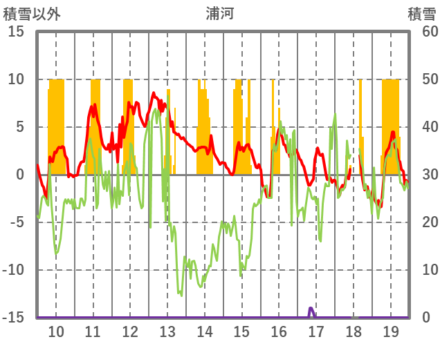 | 日 | 時 | 気温 | 降水 | 風向/風速 | 日照 | 積雪 | 降雪 |