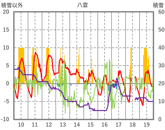 | 日 | 時 | 気温 | 降水 | 風向/風速 | 日照 | 積雪 | 降雪 |