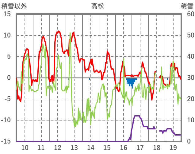 | 日 | 時 | 気温 | 降水 | 風向/風速 | 日照 | 積雪 | 降雪 |
