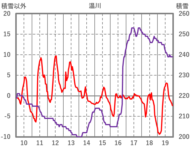 | 日 | 時 | 気温 | 降水 | 風向/風速 | 日照 | 積雪 | 降雪 |