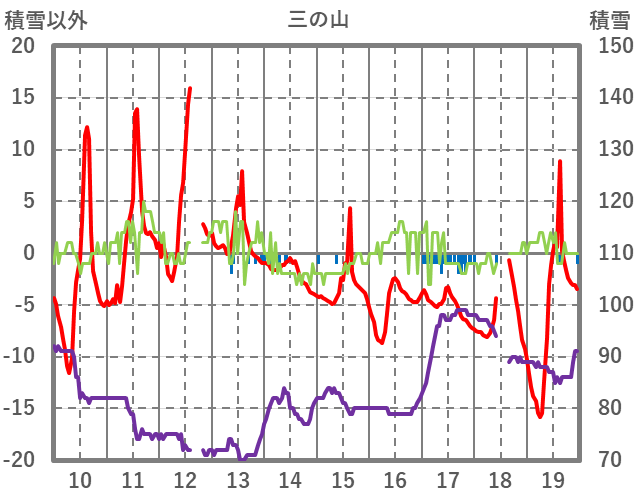 | 日 | 時 | 気温 | 降水 | 風向/風速 | 日照 | 積雪 | 降雪 |