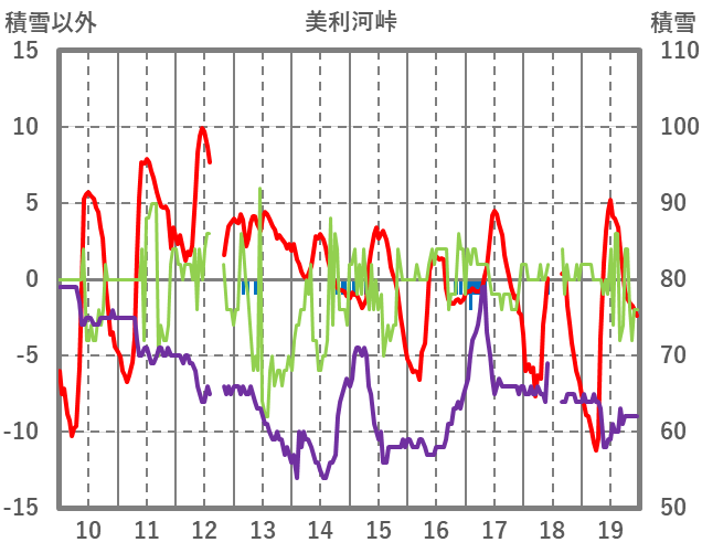 | 日 | 時 | 気温 | 降水 | 風向/風速 | 日照 | 積雪 | 降雪 |